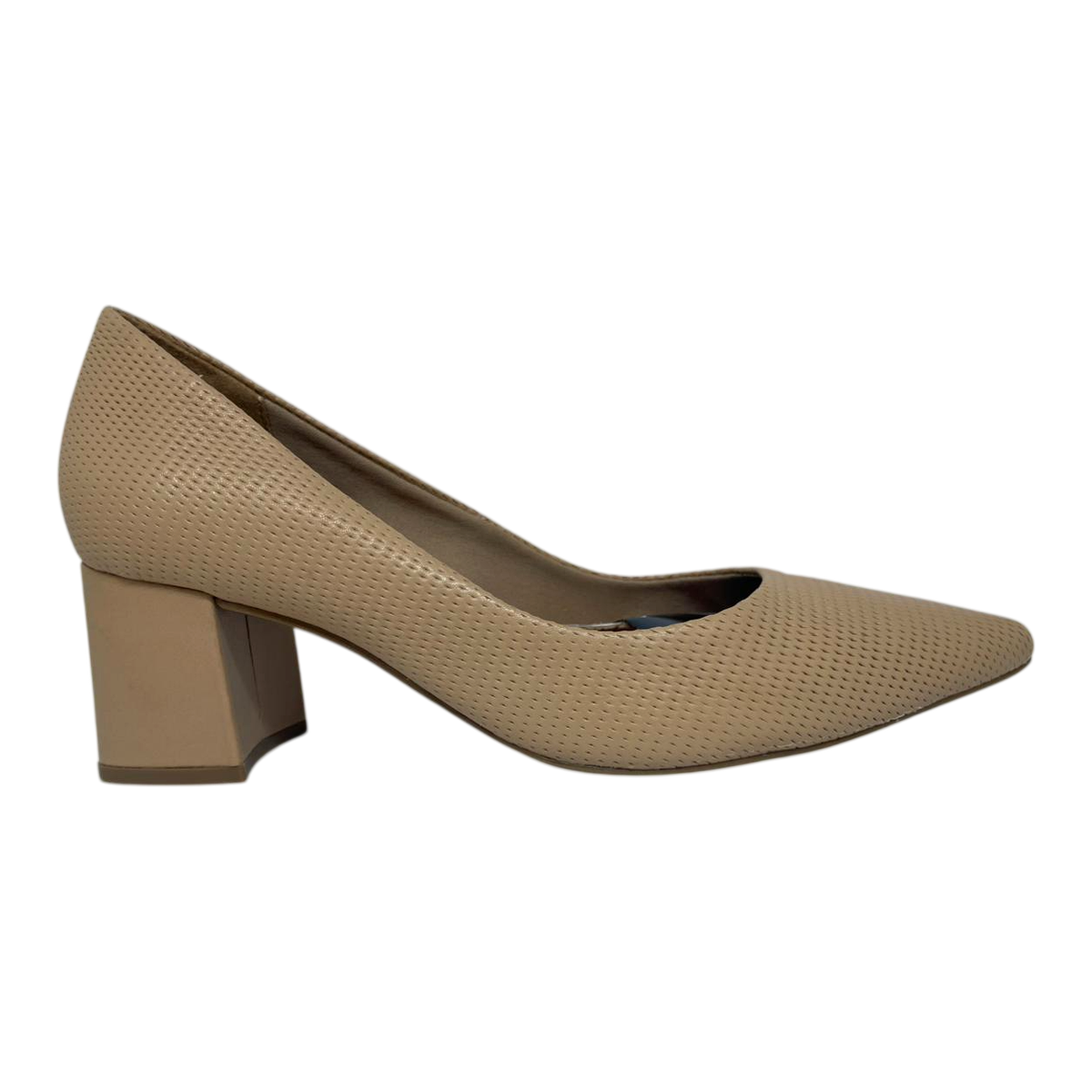Com design moderno, apresenta bico levemente mais largo, proporcionando maior conforto ao caminhar, sem abrir mão da elegância característica do scarpin de salto fino. O salto valoriza a postura e alonga a silhueta, trazendo um visual feminino e refinado.